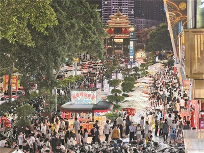 国庆中秋假期热闹非凡的南宁市朝阳路。徐天保 摄
