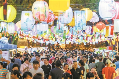 10月6日中秋夜,在桂林两江四湖景区,众多市民和游客前来观赏花灯。傅清龙 刘济纬 摄