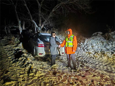 2025年11月24日,赤峰市遭遇大面积强降雪天气,漫天飞雪导致路面结冰湿滑、能见度大幅降低,部分路段交通受阻,多辆过往车辆失控滑入路下陷入困境,给辖区车主的出行安全带来严重威胁。