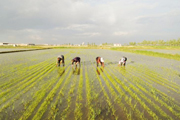 6月6日无人机拍摄的进入全面返青期的内蒙古赤峰市阿鲁科尔沁草原。随着气温回升、降雨量逐渐增多,内蒙古草原开始进入全面返青期。