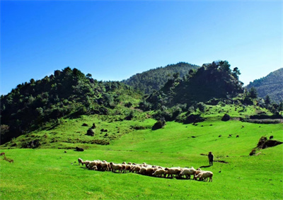 牧场中央的小山坡上,白色的云朵低悬在头顶,仿佛伸手就能触摸。蓝天像被水洗过一般,干净得没有一丝杂质,与脚下的绿草、远处的牛羊相映成趣,构成了一幅天然的油画。风一吹,草浪翻滚,带着青草的清香扑面而来;偶尔有几只云雀从草间跃起,翅膀划过蓝天,留下清脆的鸣唱,给这片寂静的牧场增添了几分灵动。据当地牧民说,如今的四大山牧场,草皮覆盖率已达95%以上,经过多年的生态养护,曾经的荒坡变成了肥美的草场,不仅成了牛羊的天堂,更成了施甸县的一张亮眼生态名片。