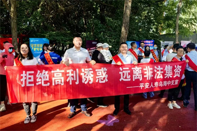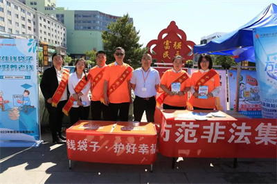 6月15日为全国防范非法集资集中宣传日。平安人寿内蒙古分公司深入参与内蒙古自治区体育总会举办纪念毛泽东“发展体育运动 增强人民体质”题词71周年全民健身系列活动,认真贯彻落实《防范和处置非法集资条例》相关规定,锚定学习贯彻习近平新时代中国特色社会主义思想主题教育目标任务,按照《关于加强防范非法集资宣传教育工作的意见》有关要求,根据《国家金融监督管理总局办公厅关于开展2023年防范非法集资宣传月活动的通知》、《内蒙古银保监局办公室转发关于开展2023年防范非法集资宣传月活动的通知》,平安人寿内蒙古内蒙古分公司积极开展防范非法集资宣传月活动,对公民普及宣传防非反诈知识的同时,传达生产生活方式的绿色低碳理念等,全区各机构同步线上线下全面开展系列活动,助力提高群众识别、抵制非法集资能力,引导群众自觉远离非法集资陷阱,增强群众的法律意识和法治观念,加大绿色、低碳、循环经济的支持,深耕绿色金融 “碳”寻绿色发展,护航人民美好幸福生活,助力内蒙古绿色金融高质量发展。