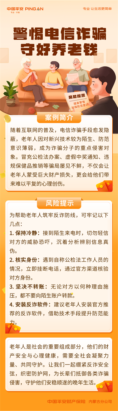 【平安产险内蒙古分公司3·15专刊 —风险提示】老年人警惕电信诈骗 守好养老钱